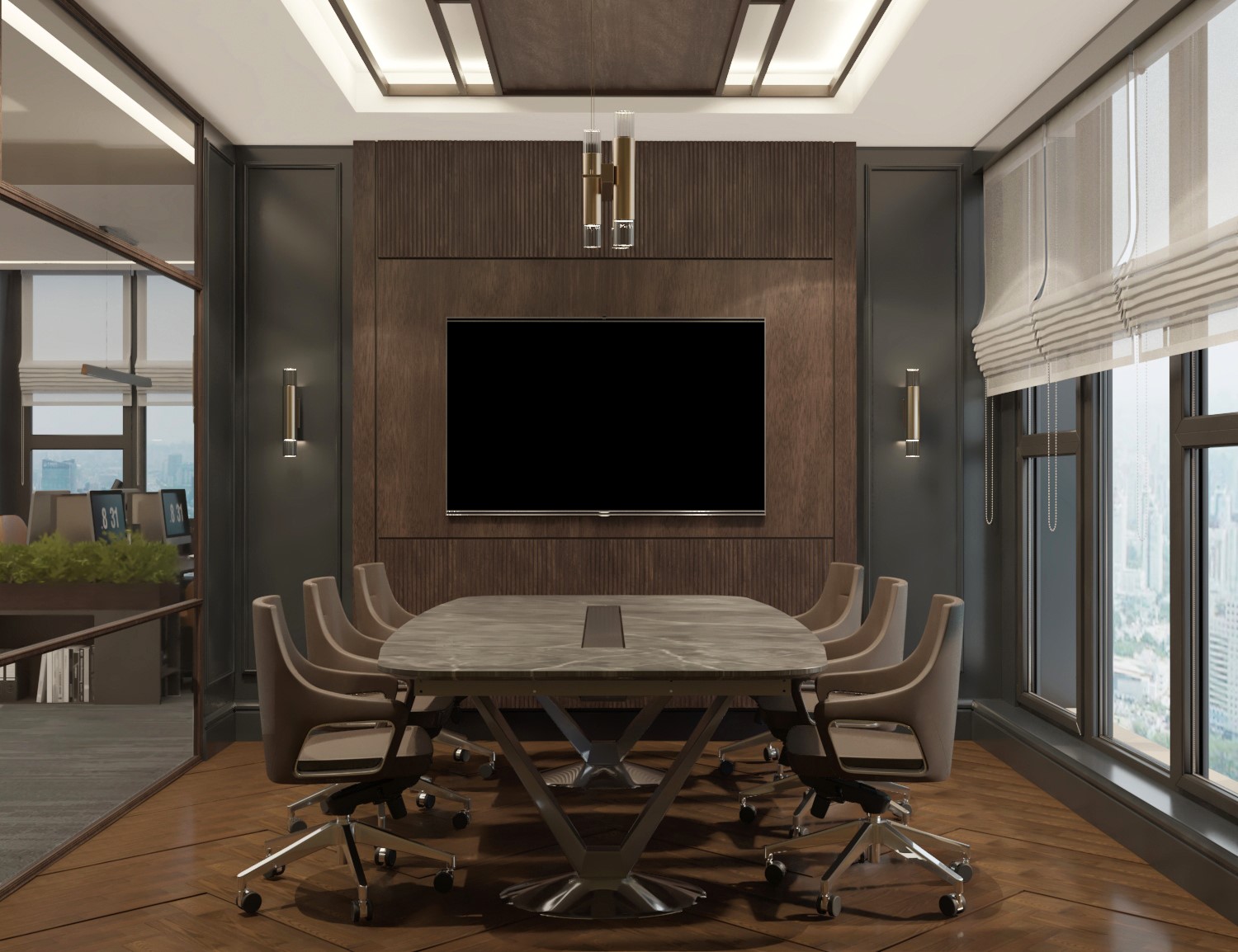 Minimal décor and greenery add a refined touch that complements the professional atmosphere.