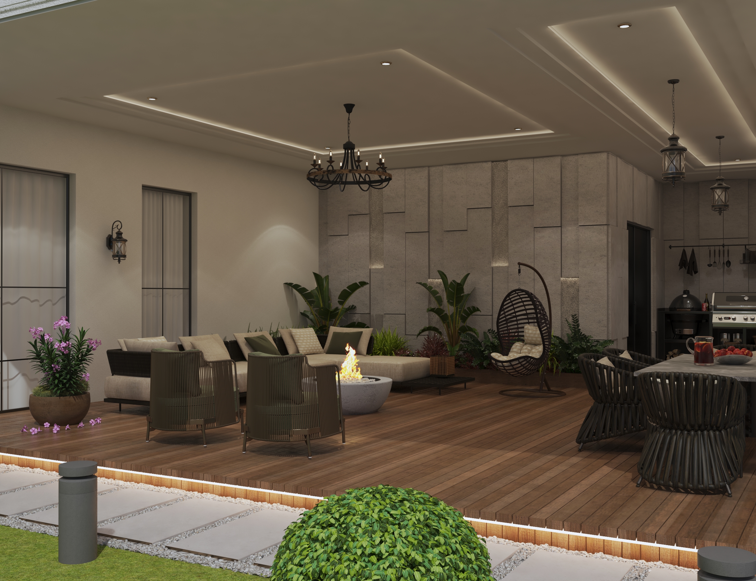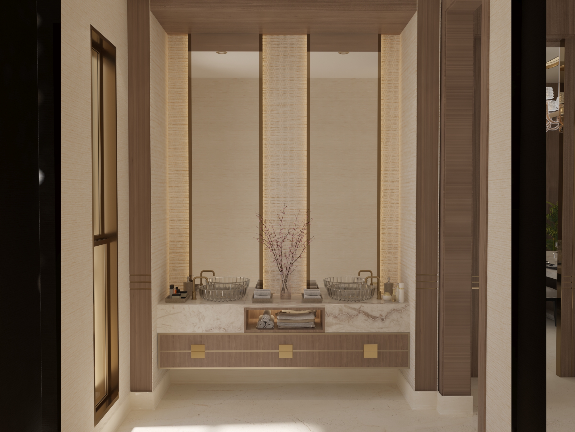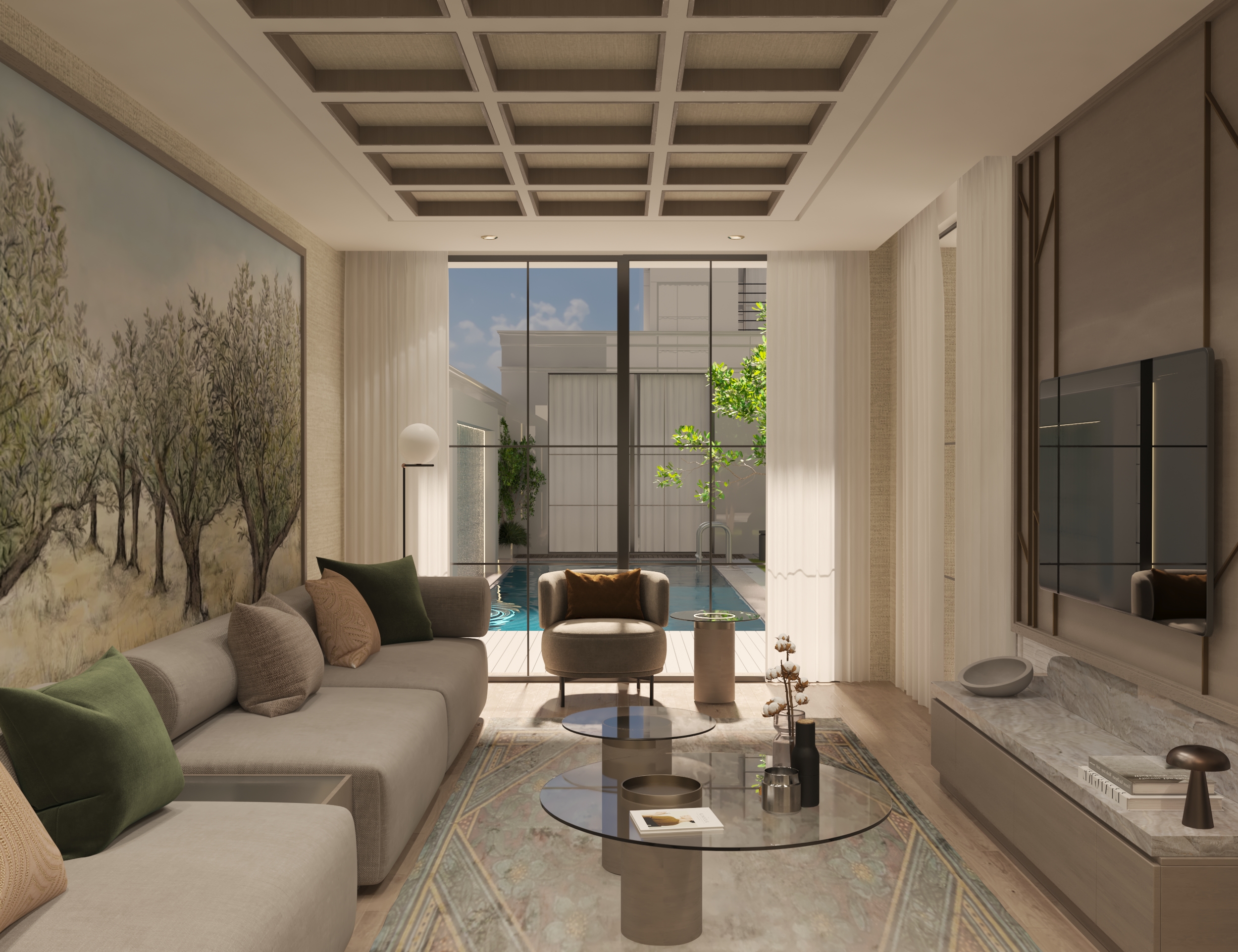A modern luxury design that features clean lines, natural materials, and soft indirect lighting, creating a refined and serene contemporary atmosphere.