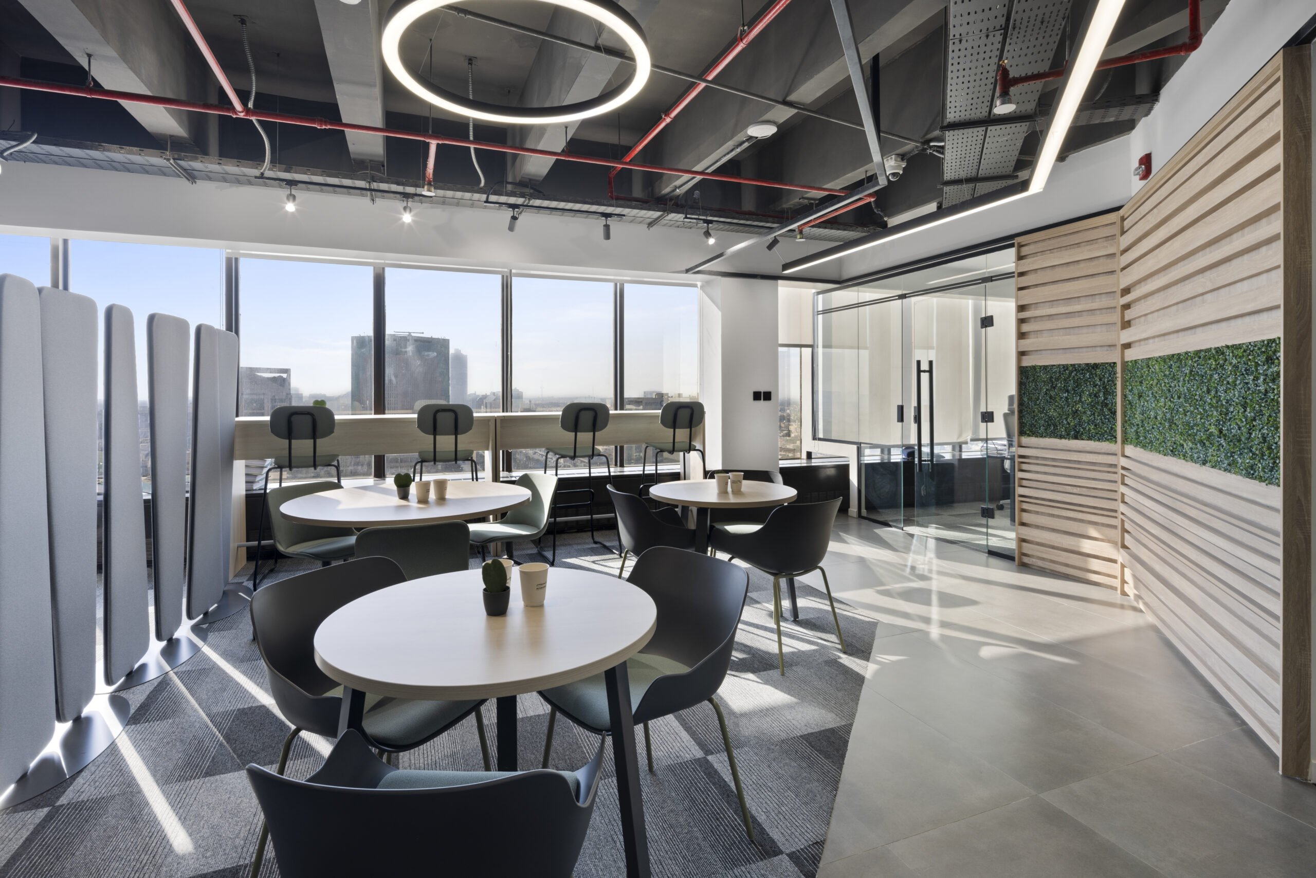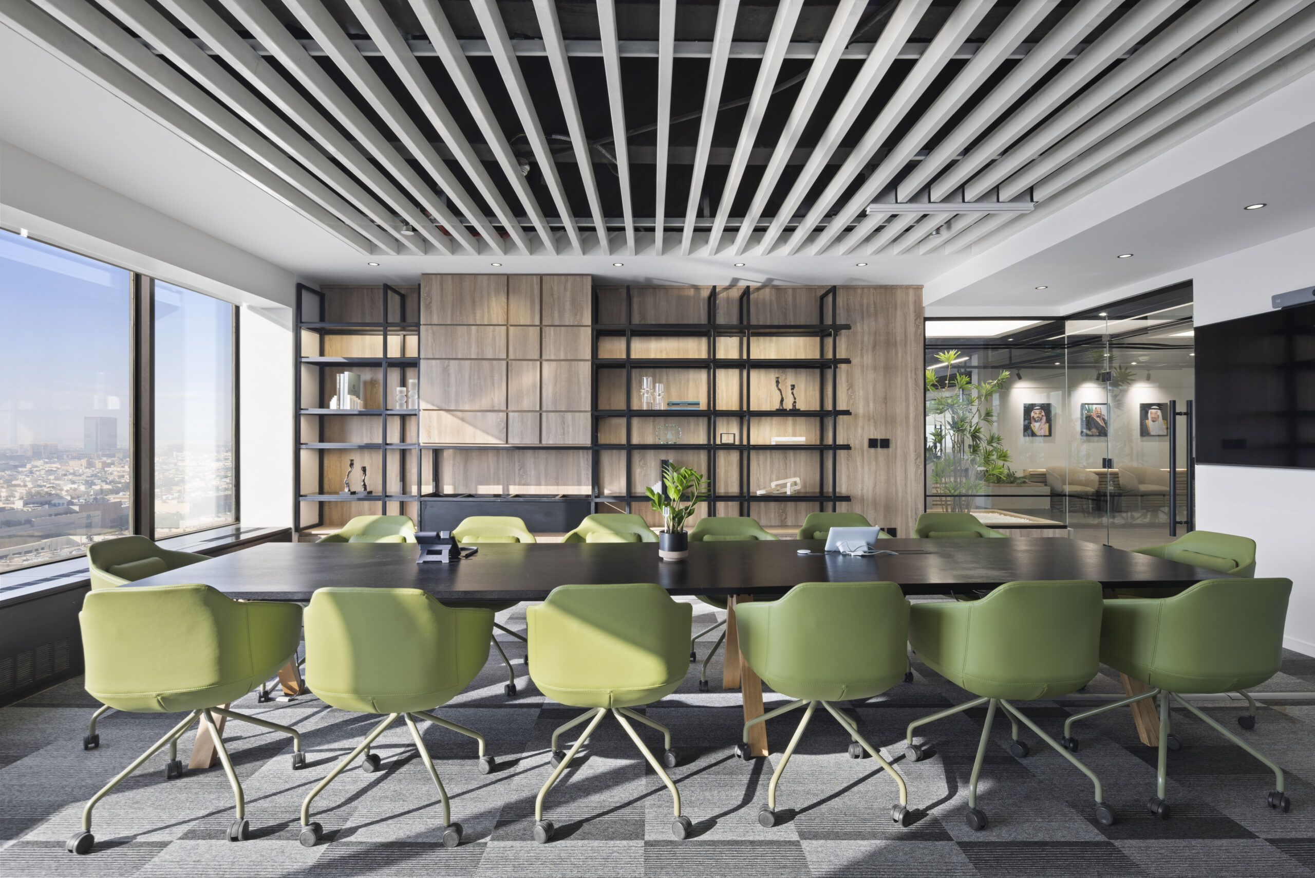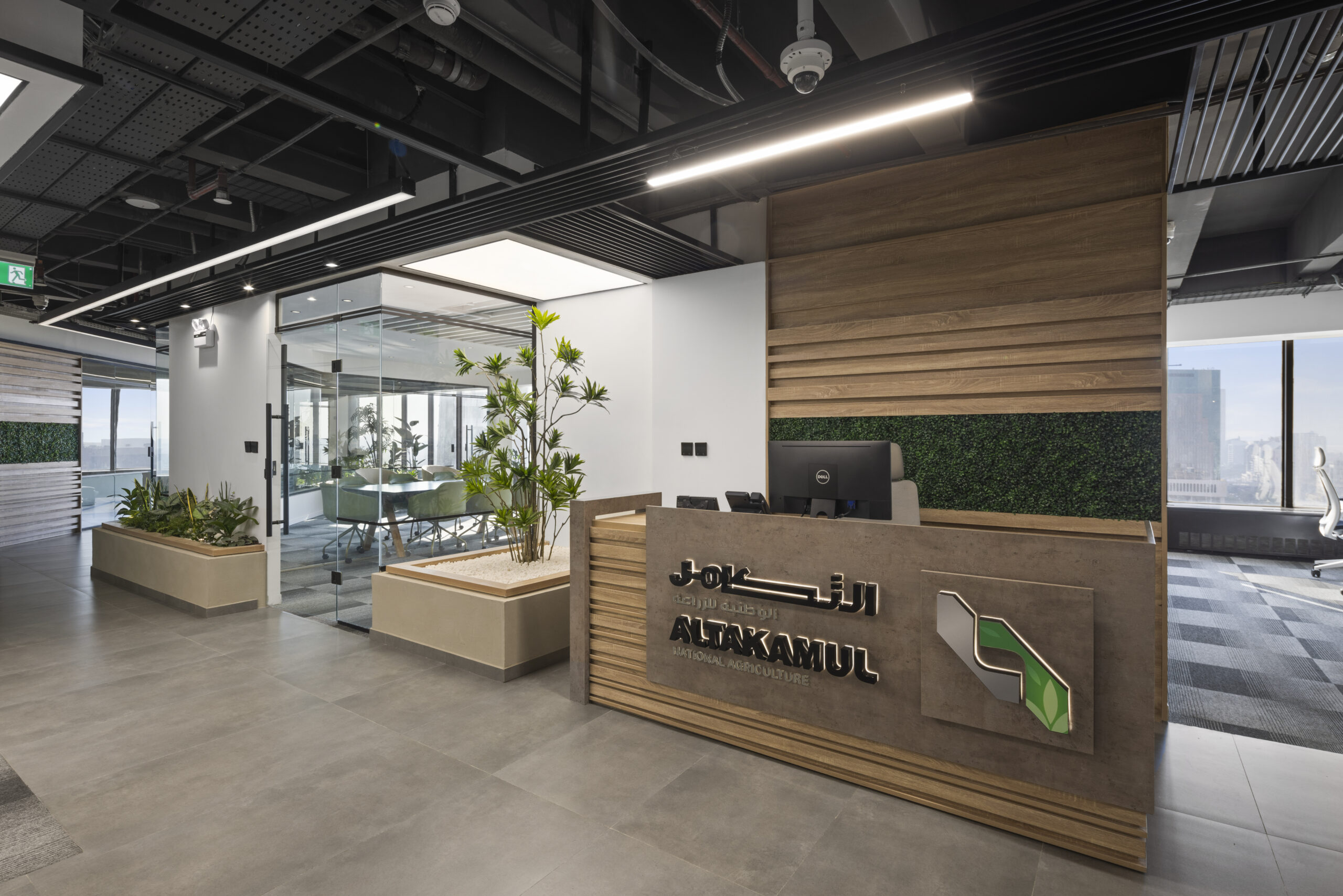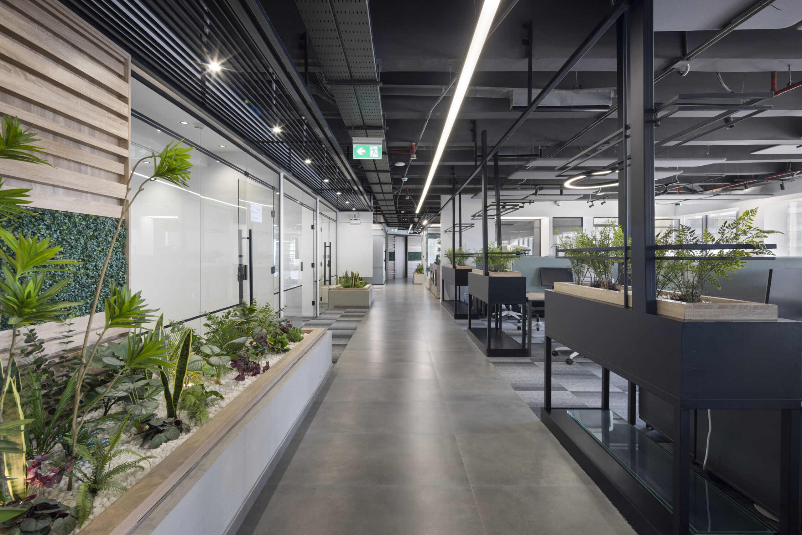 Modern office designed for a calm, collaborative environment with open workstations, private offices, manager suites, and a meeting room. Features include indoor landscaping, sound-insulation systems, and imported furniture supplied and installed for workstations, executive offices, and meeting areas, combining aesthetics, functionality, and productivity.